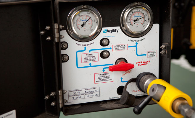 One disadvantage of natural gas is that it must be stored under high pressure, meaning that the tanks must be very strong. The tank, whether in the vehicle or underground at a service station, must be able to withstand pressures of 3,500 lbs per sq in. The cost of manufacturing these tanks raises the price of the fuel, as well as the vehicle into which the fuel goes.