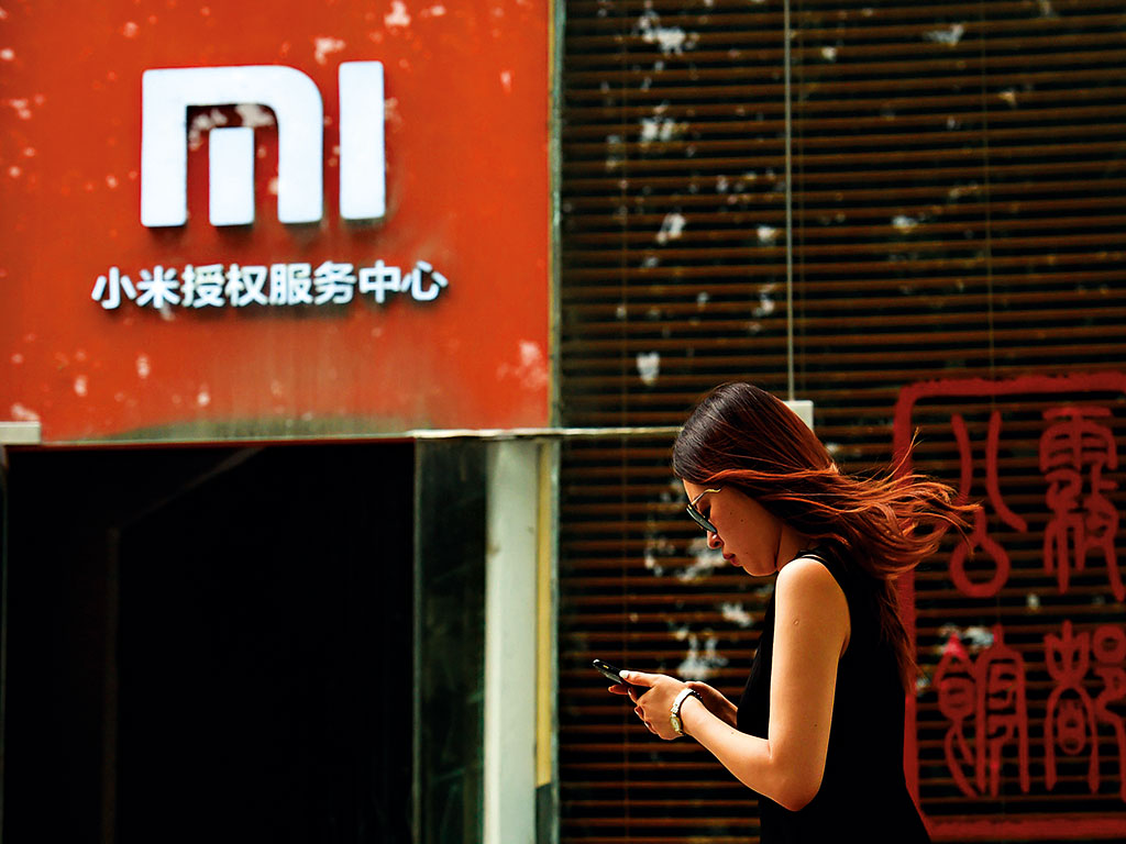 A Xiaomi phone user walks past a hoarding for the company’s flagship ‘Mi’ brand. Xiaomi has the potential to become China’s first global consumer brand