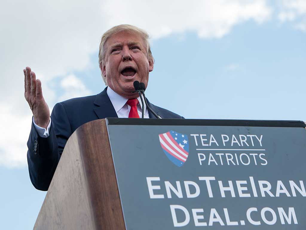 Donald Trump speaking out against the Iran nuclear deal at a Tea Party rally