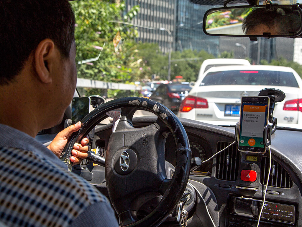 A Beijing driver using the Didi Dache taxi-calling app. Didi Dache merged with Didi Kuaidi in February last year to form Didi Kuaidi, the largest app-based transport service in the world