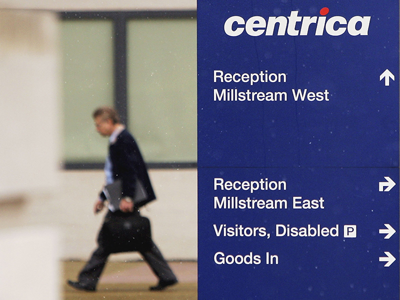 A man enters Centrica's headquarters in the UK. The energy provider is selling off assets in fossil fuels at the same time EPH (the buyer of the two gas plants) is investing in them
