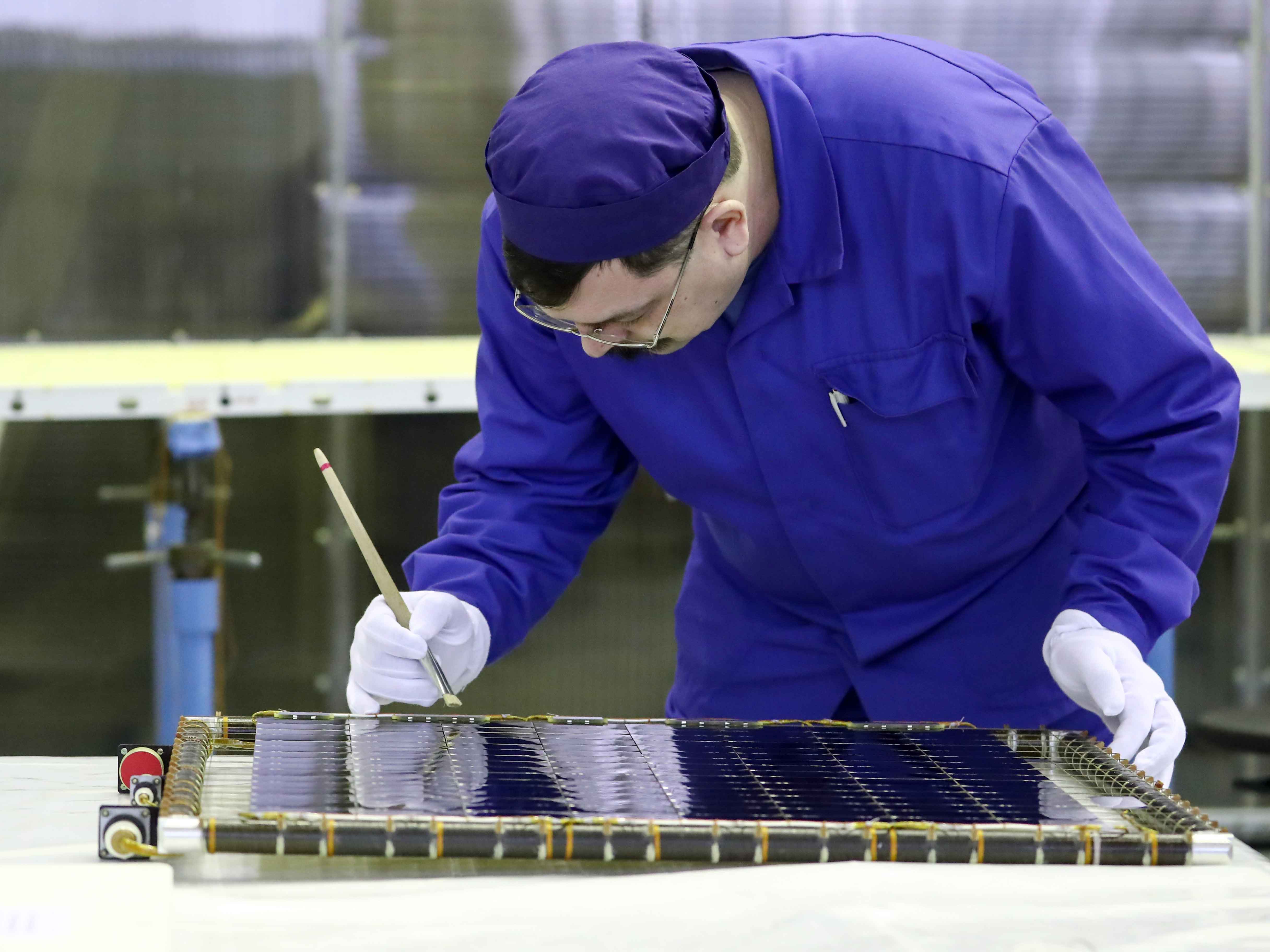 Energy towers will be able to store energy generated from renewable sources (solar panel pictured) and provide a substantial power supply to remote areas