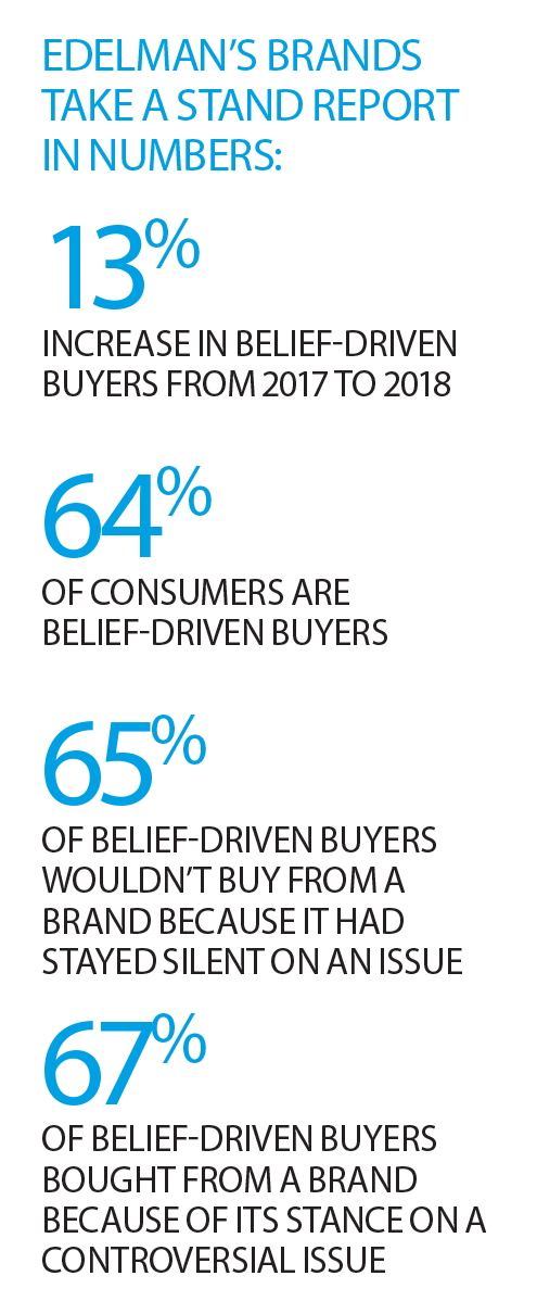 Customers base their buying decisions not only on features and price, but on the entire buying experience, which includes what a brand stands for and how those values are reflected in practice – from diversity and inclusion to sustainability and the environment. Understanding a customer’s perceptions about a brand also includes understanding their personal values. Purpose-driven purchasing is having a big impact on companies. In fact, according to the 2018 Edelman Earned Brand: Brands Take a Stand report, almost two thirds of consumers across the globe base their purchase decisions on what they perceive a brand’s beliefs to be. They are choosing, switching, avoiding or boycotting brands based on the brand’s perceived stance on societal issues.