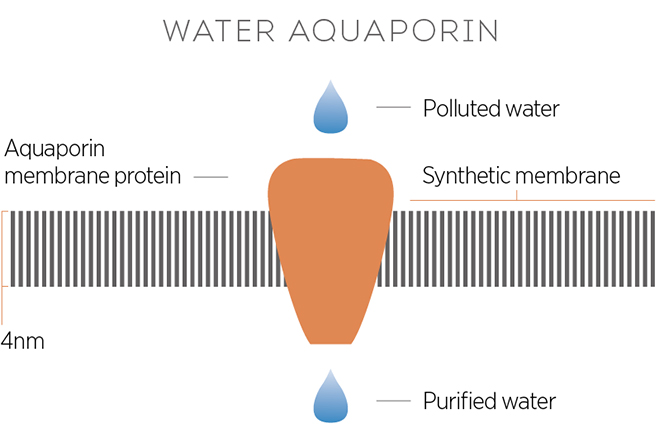 “The current purification technology, or filters, have holes of a given size that filter out contaminants based on the size difference between water molecules and contaminants,” explains Dr Montemagno. “This has a core limitation that defines the energy needed for moving materials through holes of a given size. Our technology has holes which, in addition to being smaller than many contaminants, are also mapped to the water molecule itself, so it selects the water molecule and can separate much smaller molecules, such as ions and protons. The end result is that you have a much more efficient mechanism of getting pure water than you would using other techniques. Less energy, higher through-put, smaller footprint.”