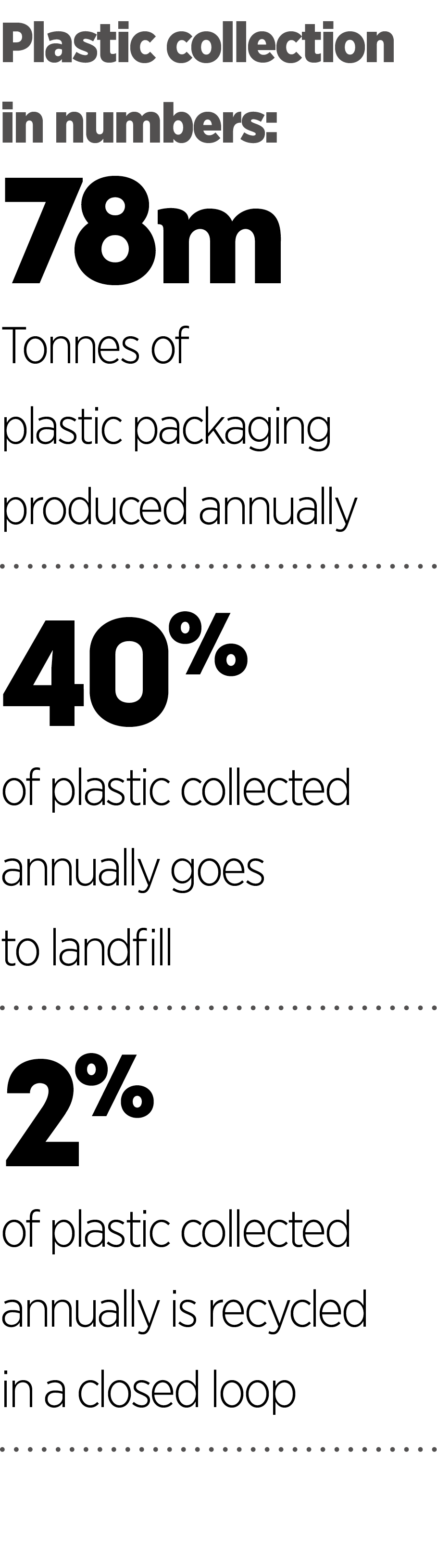These pledges are ambitious and to be admired, but without a system in place to collect and sort the plastic, the paradox remains. According to the Ellen MacArthur Foundation, of the 78 million tonnes of plastic produced annually, 40 percent goes to landfill, 32 percent becomes litter and harms nature and 14 percent is incinerated. While 14 percent is collected for recycling, only two percent of this remains in the circular economy.