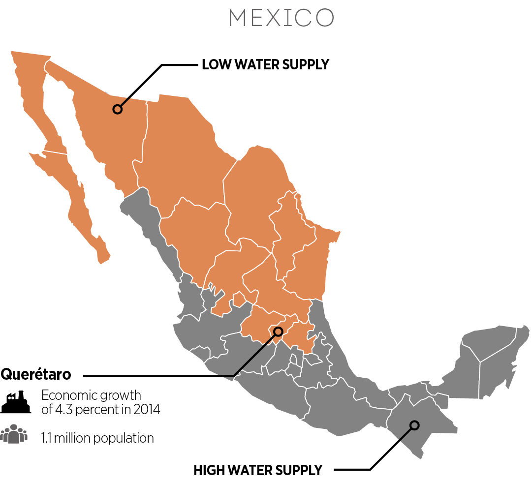 The biggest aquifer in the state was over-exploited for years, driving a major project in the early 2000s to build the country’s largest aqueduct. This unprecedented project is aligned with the state government’s comprehensive strategy to ease access to water in the metropolitan area of Querétaro. In combination with this, local authorities eliminated all water-related subsidies: this means the population pays a price that reflects the true cost of water services, raising awareness of water’s value.