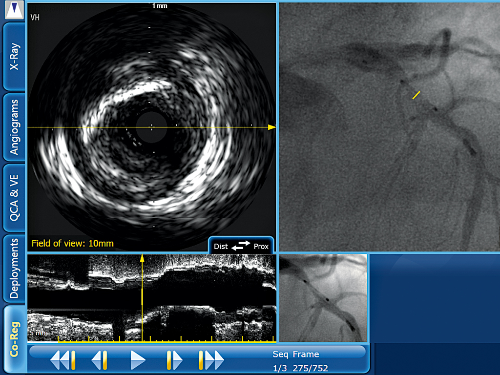 Volcano has recently launched a new product that combines angiogram recordings with IVUS images: SyncVision, an online image processing workstation for coronary vessels that allows physicians to simultaneously navigate on both an angiogram and an IVUS image in a single correlated view. SyncVision is designed to combine the functionality of the angiographic road map with the precision of the intra-vessel IVUS image and simplify the procedure for interventionalists.